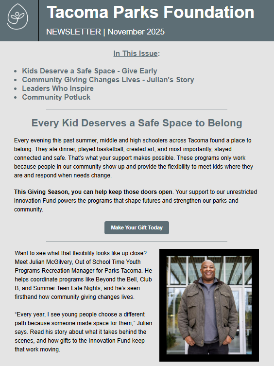 The hope that fills Summer Late Nights is not built by one person or one organization. It’s the product of an entire community pulling in the same direction, Parks Tacoma, Tacoma Public Schools, the YMCA, the Boys & Girls Club, Greentrike and countless neighbors, donors, service providers, and local businesses who refuse to let kids go without safe, welcoming spaces in the summer.
